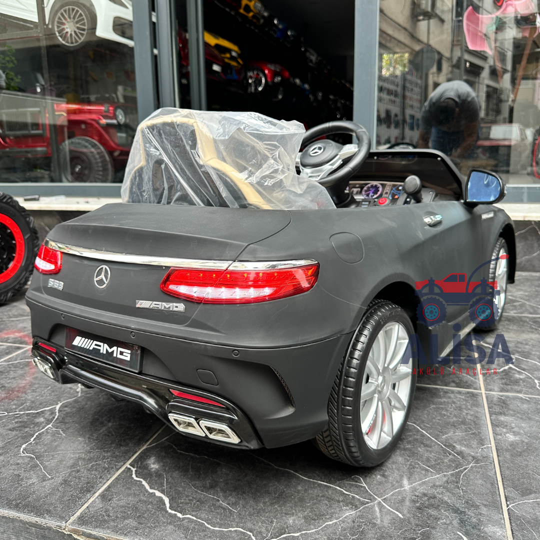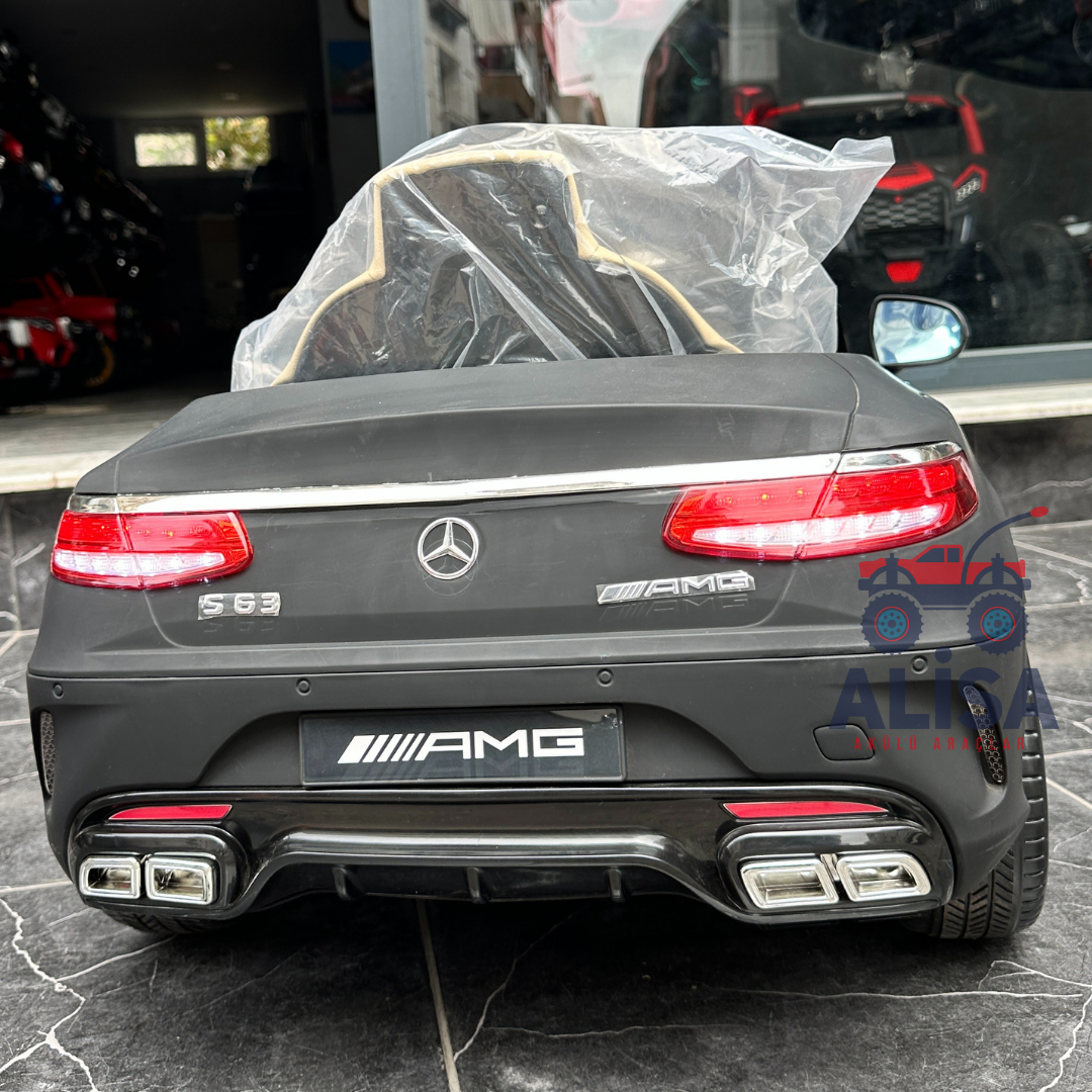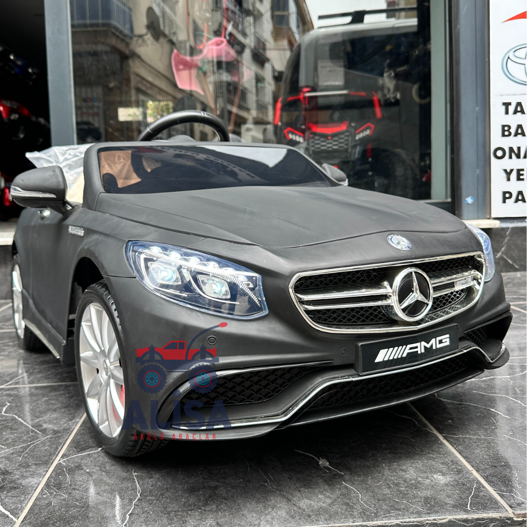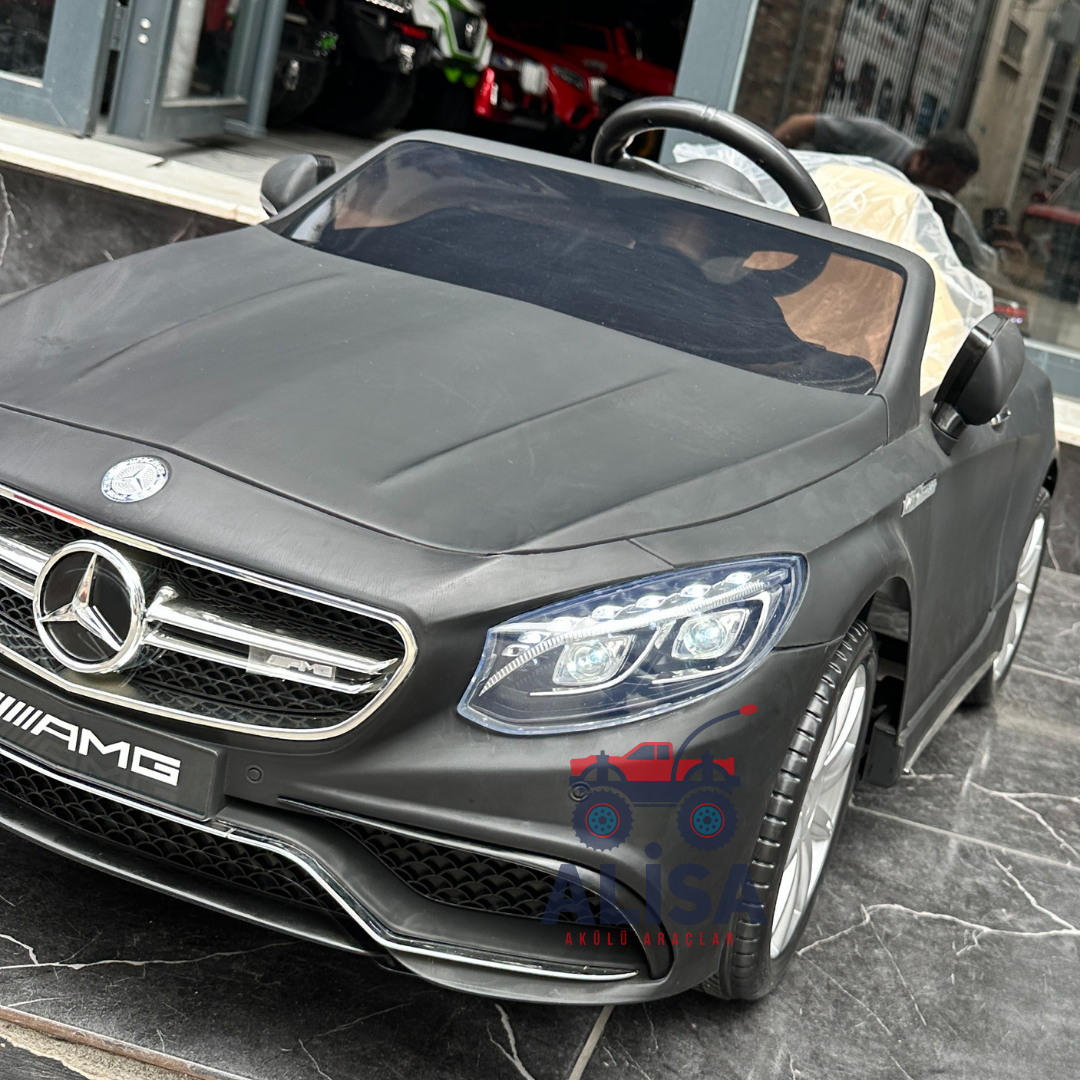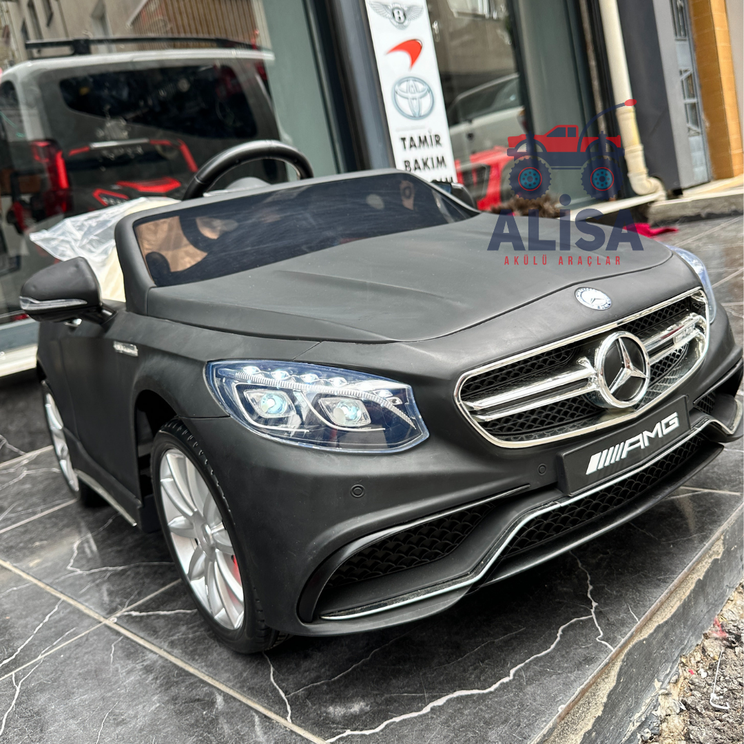 Mercedes Benz S63, resmi lisanslı bir akülü arabadır ve özel boyası sayesinde parlak bir görünüme sahiptir. Koltuktaki emniyet kemeri ile güvenlik ön planda tutulmuştur.